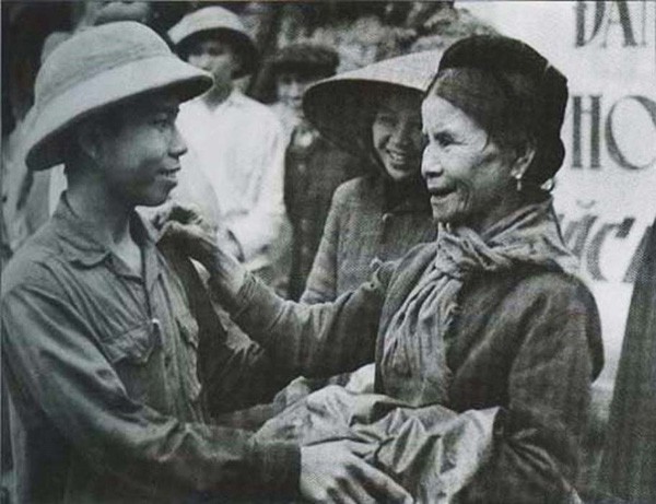 Những người mẹ bịn rịn tiễn con lên đường đi kháng chiến. Ảnh tư liệu