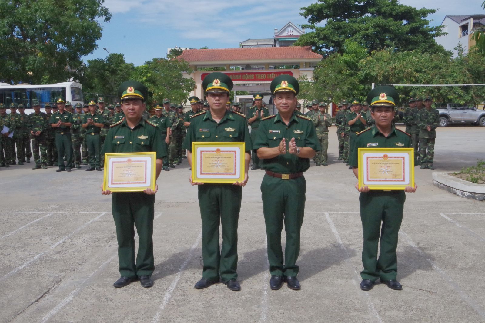 Đại tá Nguyễn Văn Hiền, Chỉ huy trưởng trao giải Nhất, Nhì, Ba toàn đoàn cho các đơn vị đạt thành tích cao