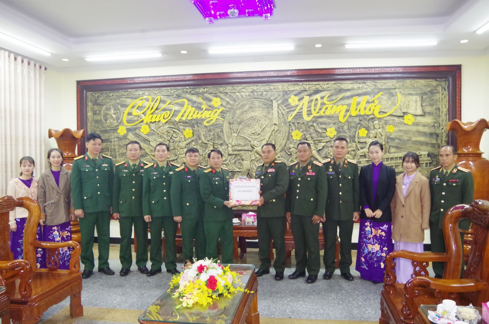 HNN.VN - Nhân dịp chuẩn bị đón Tết cổ truyền dân tộc Việt Nam, Đoàn công tác Bộ Chỉ huy Quân sự (CHQS) tỉnh Salavan, Nước Cộng hòa Dân chủ nhân dân Lào do Đại tá Sô - Pha Phô - Xay - Nha - Vông, Phó Chỉ huy trưởng Chính trị làm trưởng đoàn sang thăm, chúc mừng năm mới Bộ CHQS tỉnh.