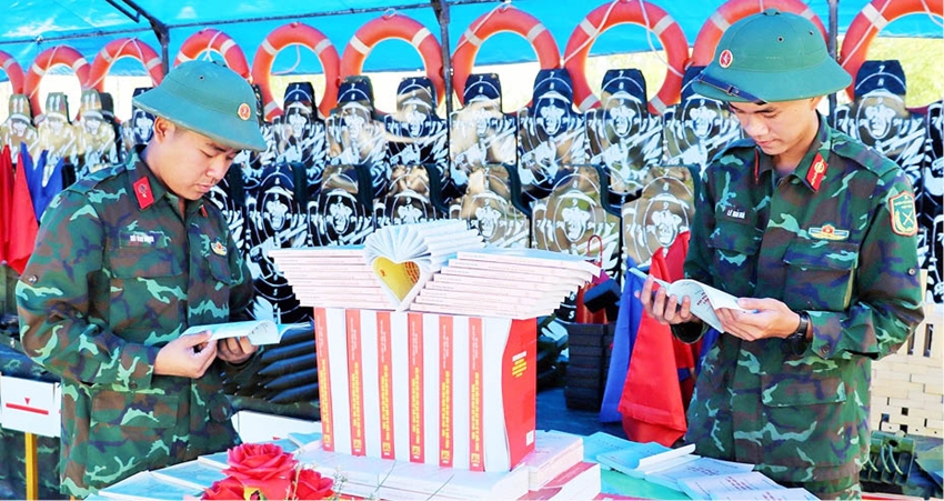 | Chiến sĩ Tiểu đoàn 1, Trung đoàn 6 đọc nghị quyết, chỉ thị, văn bản lãnh đạo, chỉ đạo của cấp trên về công tác chuẩn bị huấn luyện năm 2024 |