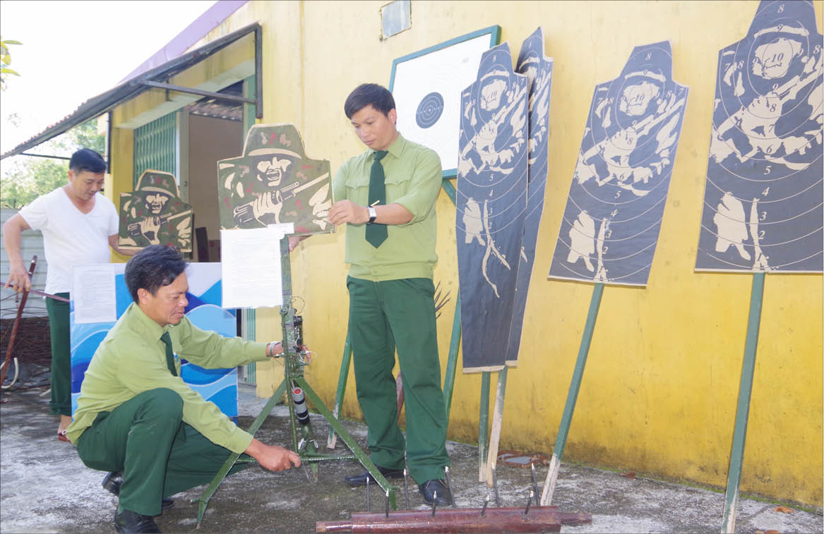 Những ngày giữa tháng 2, chúng tôi có mặt tại Ban CHQS huyện Phú Vang. Đã hết giờ làm việc buổi chiều, nhưng đội ngũ cán bộ, nhân viên Ban Tham mưu vẫn chưa nghỉ. Dưới sự chỉ huy của Phó Tham mưu trưởng Ban CHQS huyện, anh em trong Ban Tham mưu vẫn tích cực sơn sửa, lau chùi, làm mới hệ thống vật chất huấn luyện, mô hình học cụ, vũ khí thô sơ tự tạo, bia, bảng để bảo đảm phục vụ cho mùa huấn luyện…