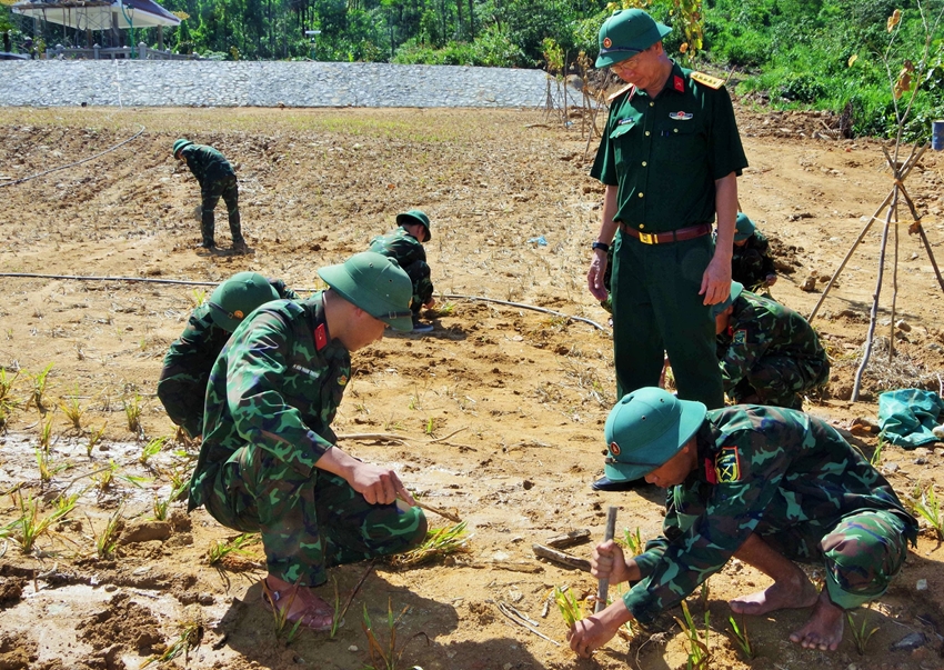 Qua kiểm tra thực tế, Đại tá Nguyễn Đình Khoa, Phó Chỉ huy trưởng Bộ CHQS tỉnh biểu dương tinh thần nỗ lực của đơn vị thi công và cán bộ, chiến sĩ đang tham gia thực hiện nhiệm vụ tại công trình.