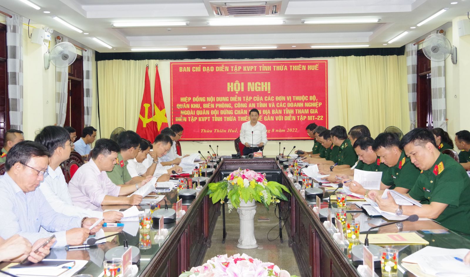 Tại hội nghị, Ban chỉ đạo diễn tập khu vực phòng thủ tỉnh đã tổ chức hiệp đồng và giao nhiệm vụ trực tiếp cho các sở, ban ngành, các cơ quan, đơn vị và các doanh nghiệp tham gia diễn tập. Qua hiệp đồng của các lãnh đạo các cơ quan, đơn vị đã bày tỏ sự thống nhất cao với những nội dung trong biên bản hiệp đồng.