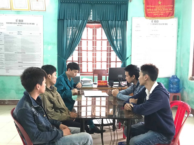 | Đại diện Ban CHQS huyện và các đoàn thể thị trấn Phú Đa đến các gia đình có thanh niên trong tuổi nhập ngũ nắm bắt thông tin |
