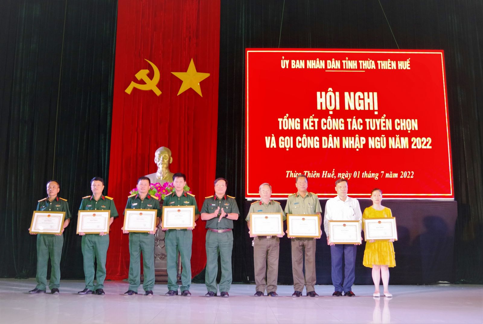 Dịp này, UBND tỉnh đã tặng bằng khen cho 9 tập thể và 8 cá nhân vì đã có thành tích xuất sắc trong công tác tuyển chọn và gọi công dân nhập ngũ năm 2022.