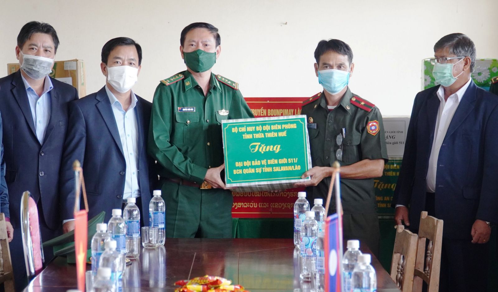 Dịp này, tỉnh Thừa Thiên Huế đã trao các phần quà gồm nhu yếu phẩm và vật tư y tế tặng lực lượng chức năng và nhân dân nước bạn Lào.