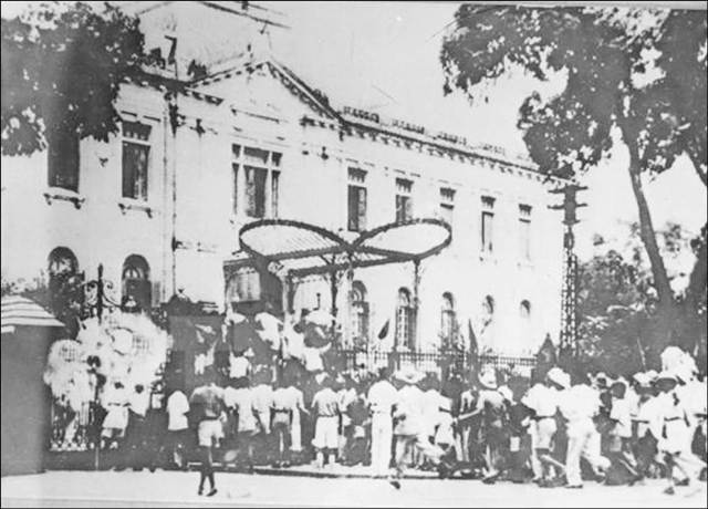 Ngày 19/8/1945, sau cuộc míttinh tại quảng trường thành phố, nhân dân Thủ đô đánh chiếm Bắc bộ Phủ, cơ quan đầu não của chính quyền tay sai Pháp ở Bắc Bộ. Ảnh: Tư liệu