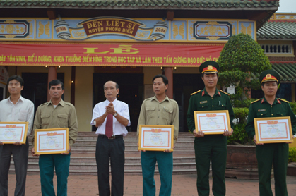 Trong thực hiện nhiệm vụ, Đảng ủy Quân sự huyện được Tỉnh uỷ tặng cờ 5 năm đạt TSVM tiêu biểu; Huyện ủy Phong Điền công nhận Đảng bộ 2 năm đạt TSVM tiêu biểu và tặng giấy khen trong thực hiện Cuộc vận động “Học tập và làm theo tấm gương đạo đức Hồ Chí Minh” giai đoạn 2007 – 2010. Ban CHQS huyện 4 năm liên tục được Bộ Tư lệnh Quân khu tặng danh hiệu đơn vị Quyết thắng. Năm 2012, Ban CHQS huyện đề nghị Bộ Quốc phòng tặng Bằng khen và đề nghị Đảng ủy Bộ Tư lệnh Quân khu 4 tặng bằng khen về thực hiện Chỉ thị 03 của Bộ Chính trị...”