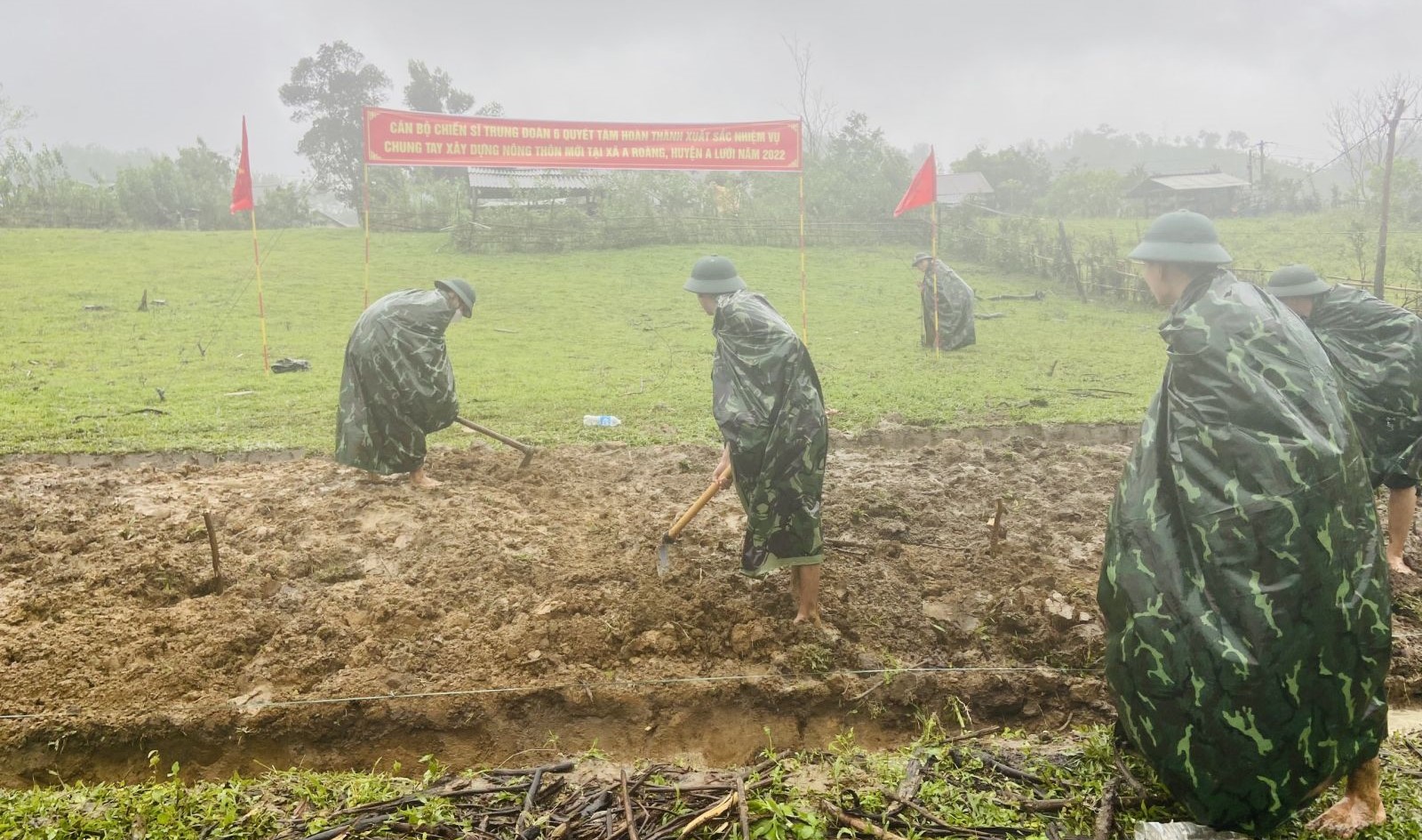 Hơn 100 cán bộ chiến sĩ Trung đoàn 6 "đội mưa" giúp dân xây dựng nông thôn mới