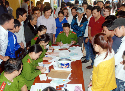 Cán bộ Phòng Cảnh sát Quản lý hành chính về trật tự xã hội về tận thôn bản cấp đổi chứng minh nhân dân cho người dân A Lưới