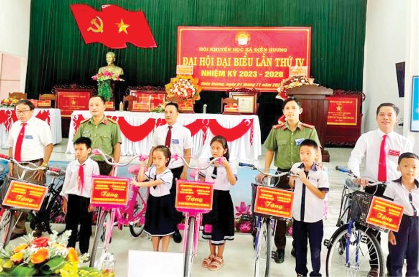 Tại xã A Roàng (A Lưới), Phòng An ninh nội địa và Phòng An ninh Chính trị nội bộ trao tặng 20 xe đạp cho các em học sinh vượt khó, học giỏi; tặng 25 phần quà đến các hộ gia đình có hoàn cảnh khó khăn; hỗ trợ mô hình sinh kế cho 1 hộ gia đình đặc biệt khó khăn; thăm, tặng quà cho các bé Trường mẫu giáo A Roàng với tổng giá trị là 70 triệu đồng.