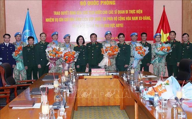 Tại buổi lễ, 7 sĩ quan đã được trao Quyết định của Chủ tịch nước về việc đi làm nhiệm vụ gìn giữ hòa bình Liên hợp quốc tại các phái bộ. Trong đó, thực hiện nhiệm vụ tại phái bộ UNMISS (Nam Sudan) có hai đồng chí gồm: Trung tá Nguyễn Kim Tỉnh, Trợ lý Tác huấn, Phòng Tham mưu - Kế hoạch, Cục Gìn giữ hòa bình Việt Nam, được cử đi làm nhiệm vụ Sĩ quan Quan sát viên Quân sự thay thế đồng chí Vũ Hồng Hưng (kiêm Chỉ huy trưởng lực lượng Việt Nam tham gia hoạt động gìn giữ hòa bình Liên hợp quốc tại Nam Sudan); Thượng úy Nguyễn Như Tuấn, nguyên Giảng viên Bộ môn Ngoại ngữ - Tiếng Việt, Khoa Văn hóa - Ngoại ngữ, Trường Sĩ quan Chính trị, được cử đi làm nhiệm vụ Sĩ quan Quan sát viên quân sự thay thế đồng chí Hoàng Hữu Công Thành.