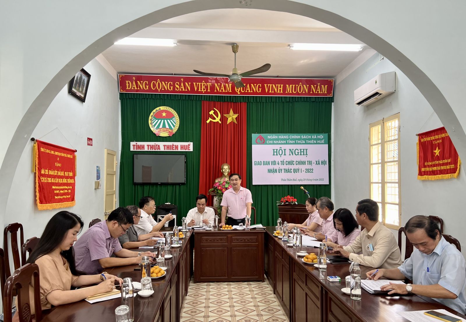 HNN.VN - Ngày 29/4, Ngân hàng Chính sách xã hội chi nhánh (NHCSXH) tỉnh và các tổ chức chính trị-xã hội đã có phiên họp giao ban theo định kỳ quý 1 năm 2022 nhằm đánh giá kết quả hoạt động ủy thác cho vay vốn đối với hộ nghèo và các đối tượng chính sách khác, đề ra phương hướng nhiệm vụ, giải pháp cần triển khai trong quý II năm 2022.