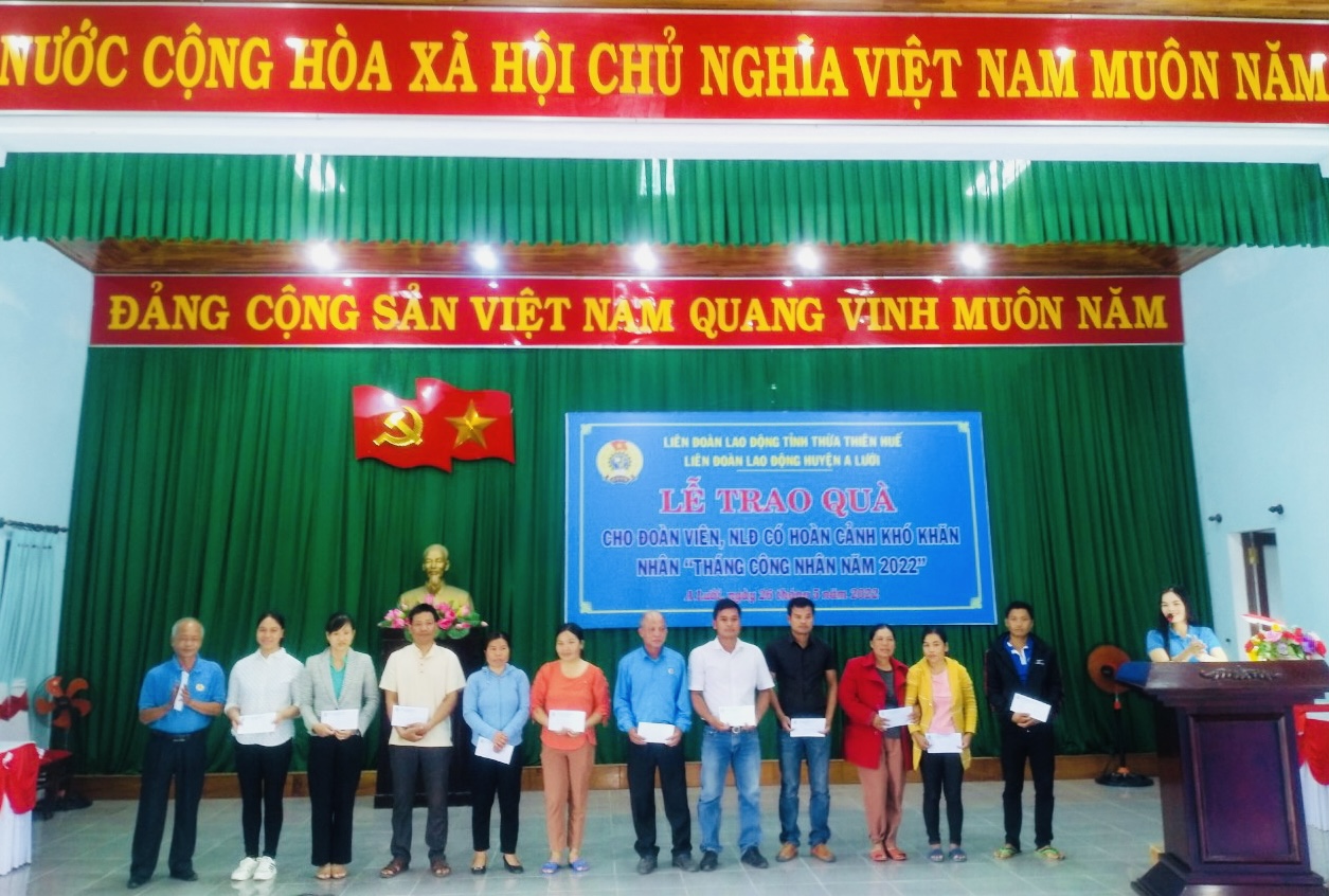Nhân dịp tháng công nhân, tháng hành động về an toàn vệ sinh lao động năm 2022, các cấp công đoàn huyện A Lưới đã tổ chức nhiều hoạt động với hình thức, nội dung phong phú, sáng tạo, nhằm bảo vệ quyền và lợi ích hợp pháp, chính đáng cho đoàn viên, công nhân lao động.