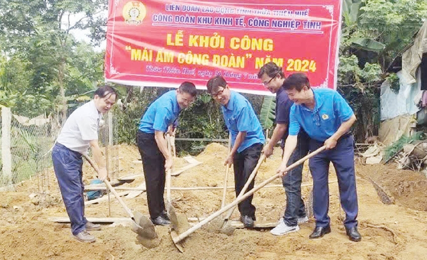 Công đoàn Khu Kinh tế, công nghiệp tỉnh cũng đã tổ chức khởi công “Mái ấm Công đoàn” cho gia đình anh Trương Văn Thiệt, đoàn viên Công ty TNHH Vitto Phú Lộc. Anh Thiệt cho hay, vợ chồng anh đều là công nhân, mấy năm gần đây, công ty khó khăn về đơn hàng, thu nhập bấp bênh nên việc xây nhà mãi chỉ là... dự định. Từ lâu, vợ chồng anh phải xin ở tạm trong nhà thờ họ. Nay được công đoàn hỗ trợ 40 triệu đồng từ Quỹ “Mái ấm Công đoàn”, vợ chồng anh quyết tâm thực hiện giấc mơ an cư bấy lâu nay. “Có công đoàn đồng hành, mái ấm gia đình tôi thêm vững bền, tôi thật sự biết ơn”, anh Thiệt xúc động.