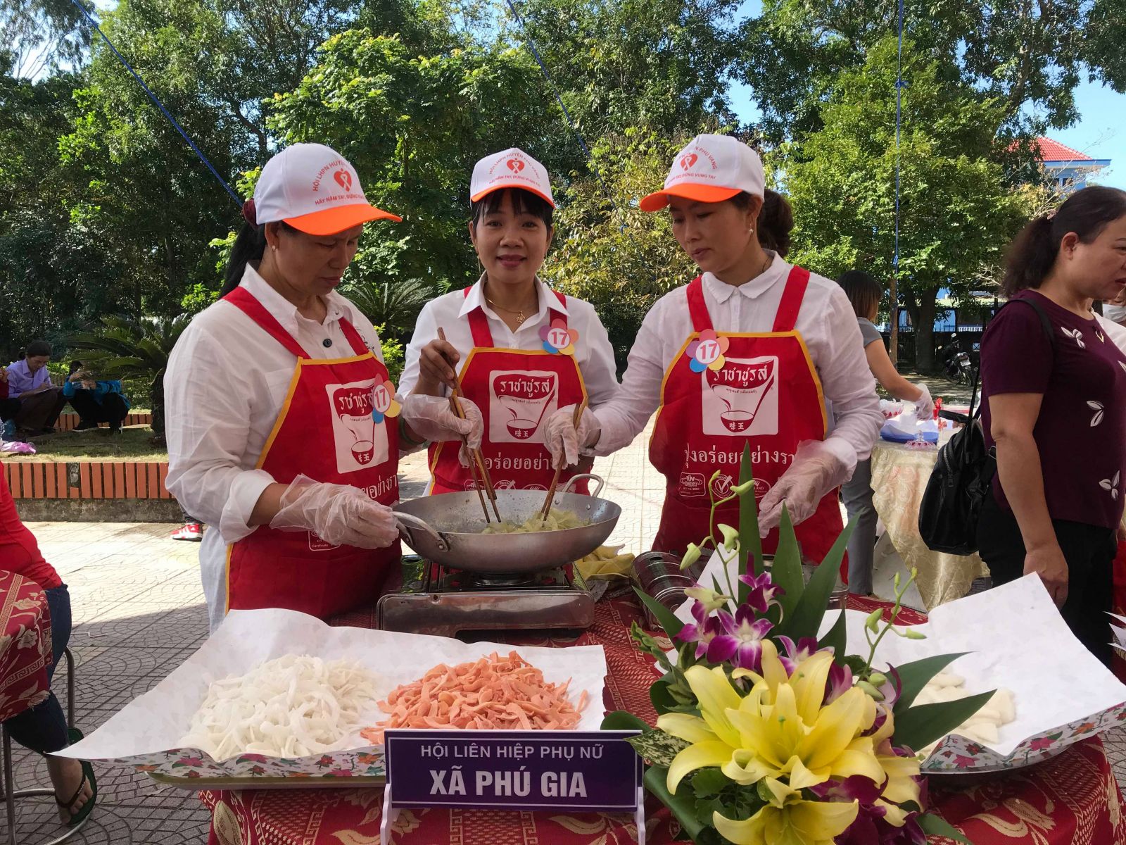 Phụ nữ đội Phú Đa thực hiện phần thi làm mứt