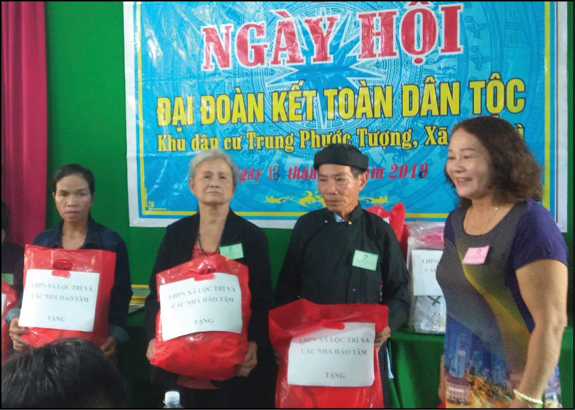 Hội LHPN xã Lộc Trì trao quà cho các hoàn cảnh khó khăn tại Ngày hội Đại đoàn kết toàn dân tộc năm 2019