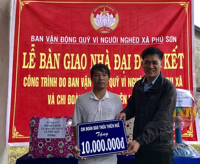 Trong đó, UBMTTQ Việt Nam TX. Hương Thủy ủng hộ 30 triệu; Chi đoàn Báo Thừa Thiên Huế hỗ trợ 10 triệu từ nguồn đóng góp của đoàn viên và kêu gọi, vận động tài trợ; 25 triệu của gia đình, bà con thôn xóm giúp đỡ.