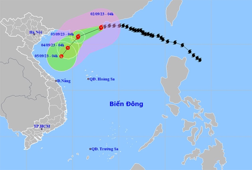 Ngày và đêm 3/9, vùng biển phía Bắc của khu vực Bắc Biển Đông gió mạnh cấp 6-7, vùng gần tâm bão mạnh cấp 8-9, giật cấp 11, biển động rất mạnh; vùng biển phía Nam khu vực giữa Biển Đông, vùng biển phía Bắc khu vực Nam Biển Đông (bao gồm vùng biển phía Bắc quần đảo Trường Sa) và vùng biển từ Ninh Thuận đến Bà Rịa - Vũng Tàu có gió Tây Nam mạnh cấp 6, có lúc cấp 7, giật cấp 8 - 9, biển động mạnh.