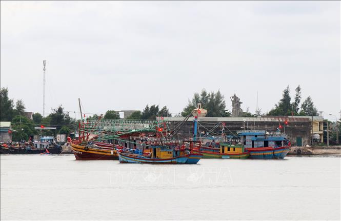 Tàu thuyền neo đậu tránh trú bão số 5 ở cảng cá Nam Cửa Việt, xã Triệu An, huyện Triệu Phong, Quảng Trị. Ảnh: Nguyên Lý/TTXVN