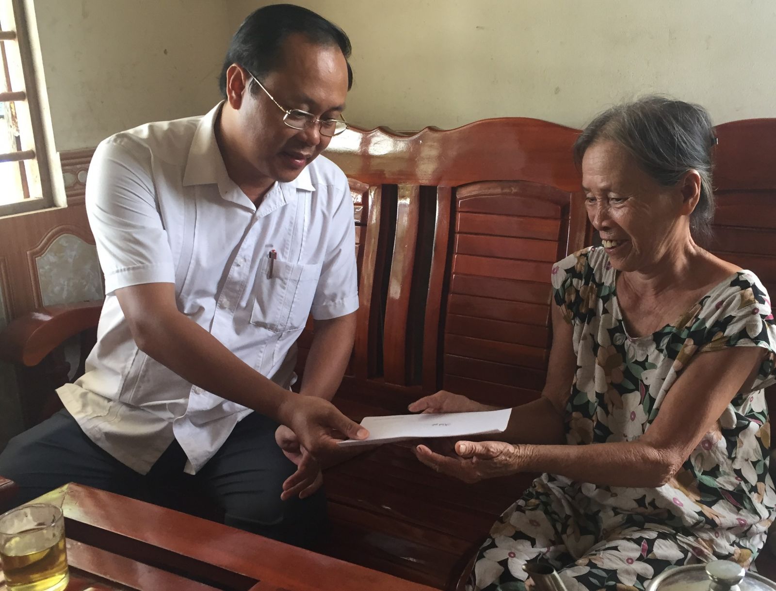 Ông Hoàng Đăng Khoa tặng quà cho bà Phạm Thị Tiến ở xã Quảng Vinh