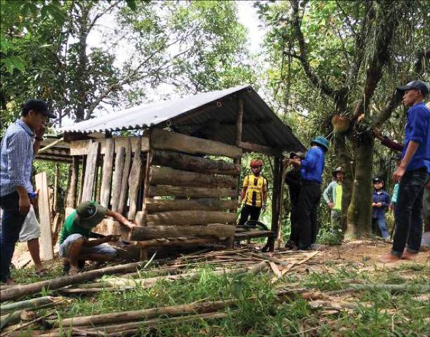 Các đơn vị được phân công làm chuồng trại nuôi gia súc cho các hộ nghèo