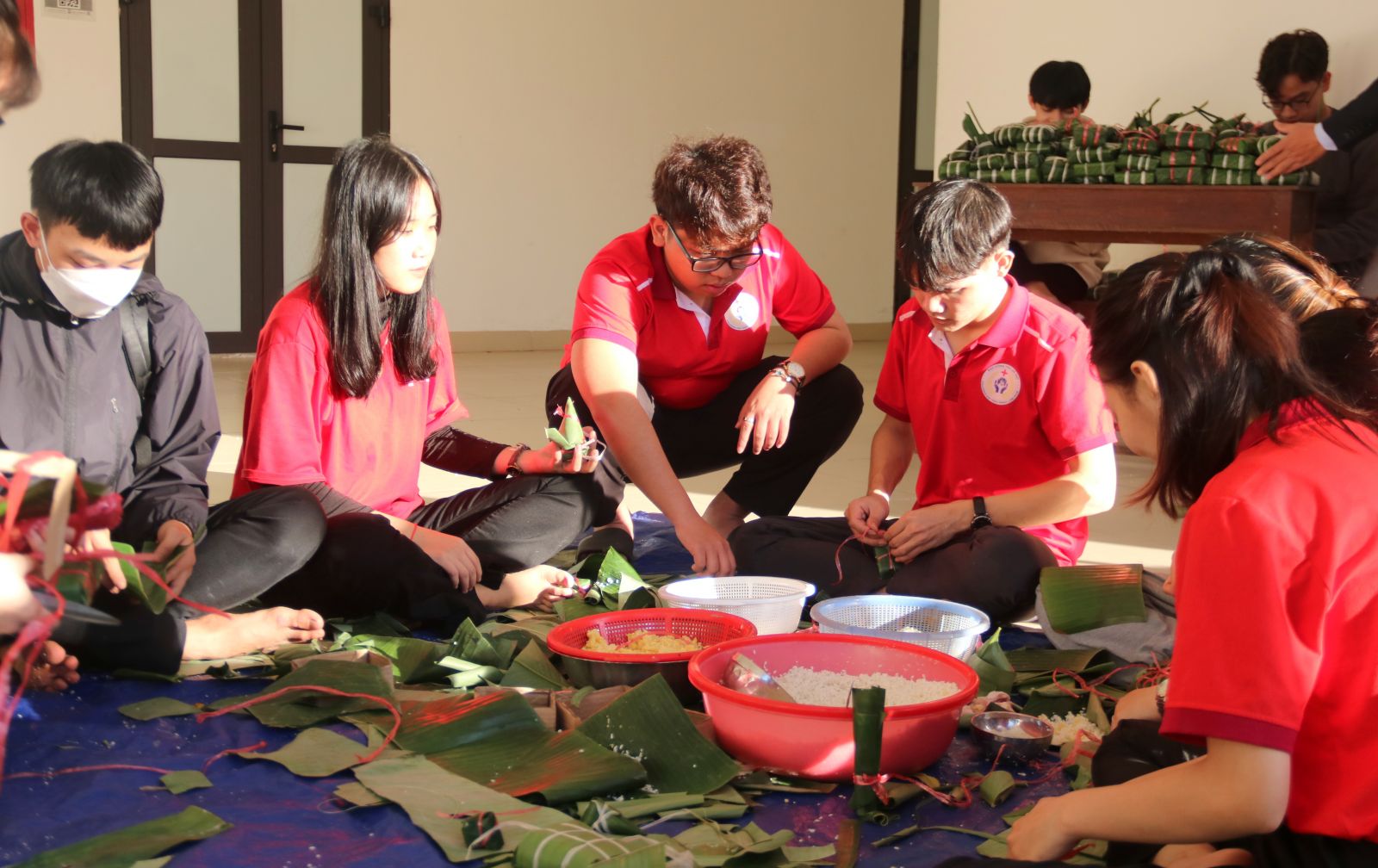 Ngoài bánh chưng, sinh viên còn làm thêm bánh ú