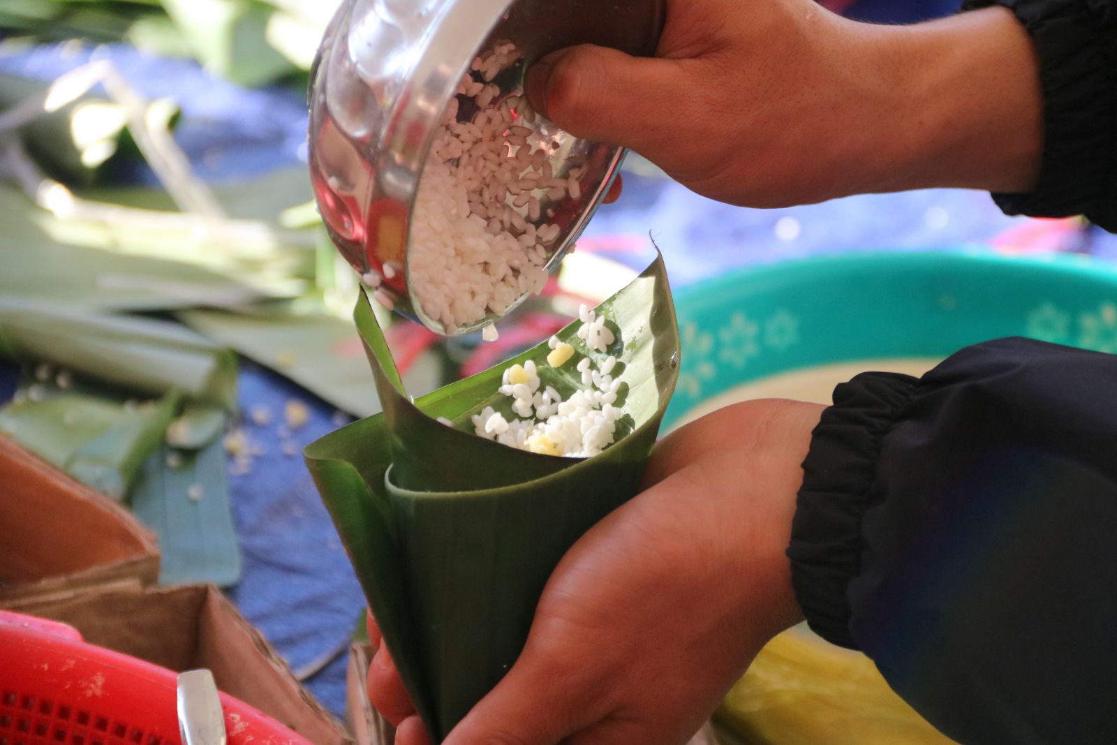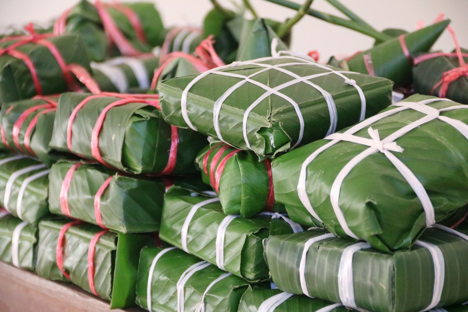 Bánh chưng do sinh viên tự gói để tặng những người có hoàn cảnh khó khăn