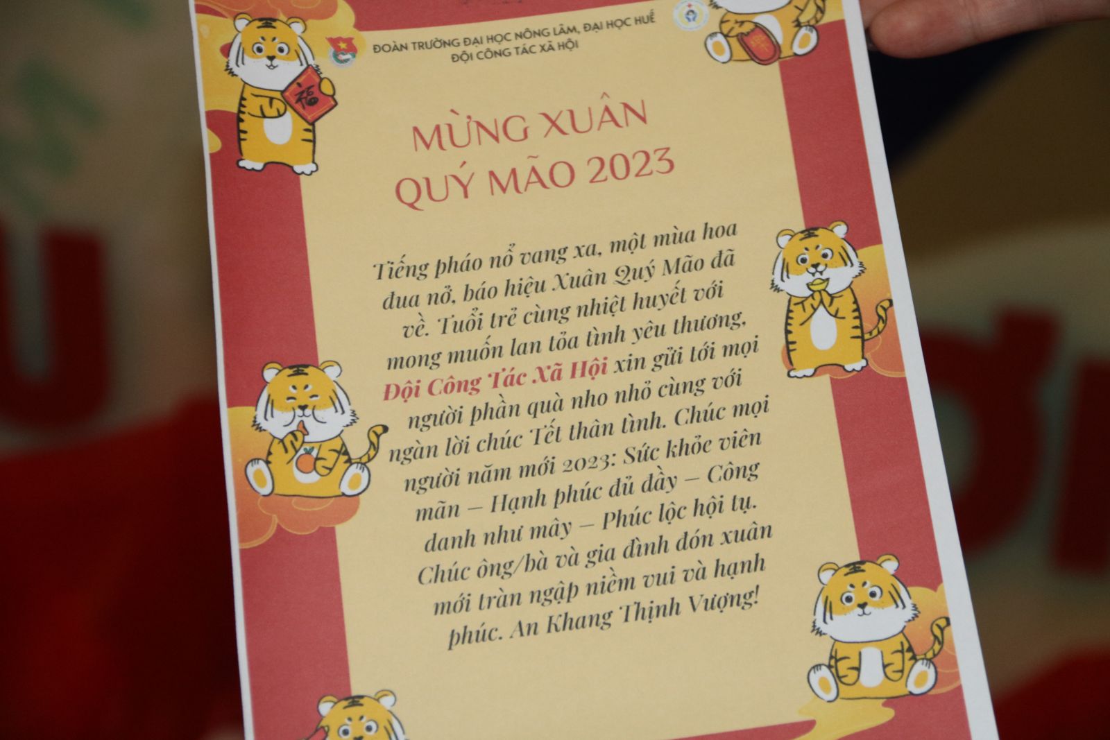 Mai Trần Minh Thư (quê ở Quảng Nam) chia sẻ: “Ngay trước thềm năm mới, em muốn nán lại, làm một điều gì đó có ý nghĩa. Là thành viên của Đội Công tác xã hội, em ý thức được trách nhiệm chung tay với các hoạt động cộng đồng. Những món quà này có thể không quá lớn về vật chất, nhưng là món quà tinh thần mà như chúng em vẫn thường bảo nhau là mình cố gắng góp tình trao tết cho người nghèo”.