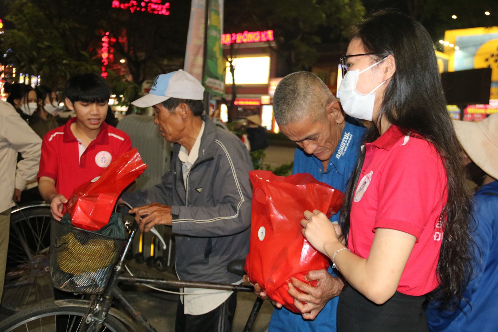 Ông Bảo Minh, một trường hợp được nhận quà, tâm sự: “Tôi năm nay đã bước qua tuổi 73, nhưng hoàn cảnh khó khăn, đêm hôm vẫn còn tranh thủ bòn thêm vài cuốc xe đạp ôm. Trời tạnh ráo còn đỡ, mưa càng buồn hơn. Nhưng hôm nay, ngồi trên đường chờ khách, gặp được các em và ngồi trò chuyện, lại nhận được phần quà, lòng thấy rất vui”.