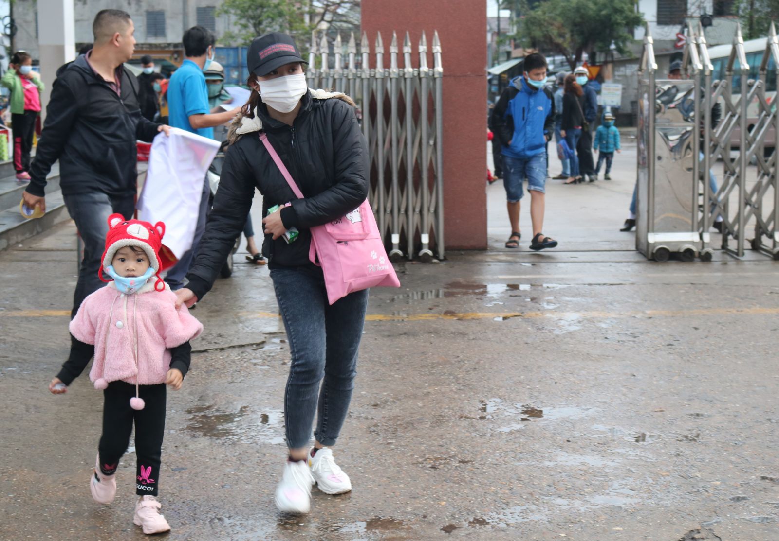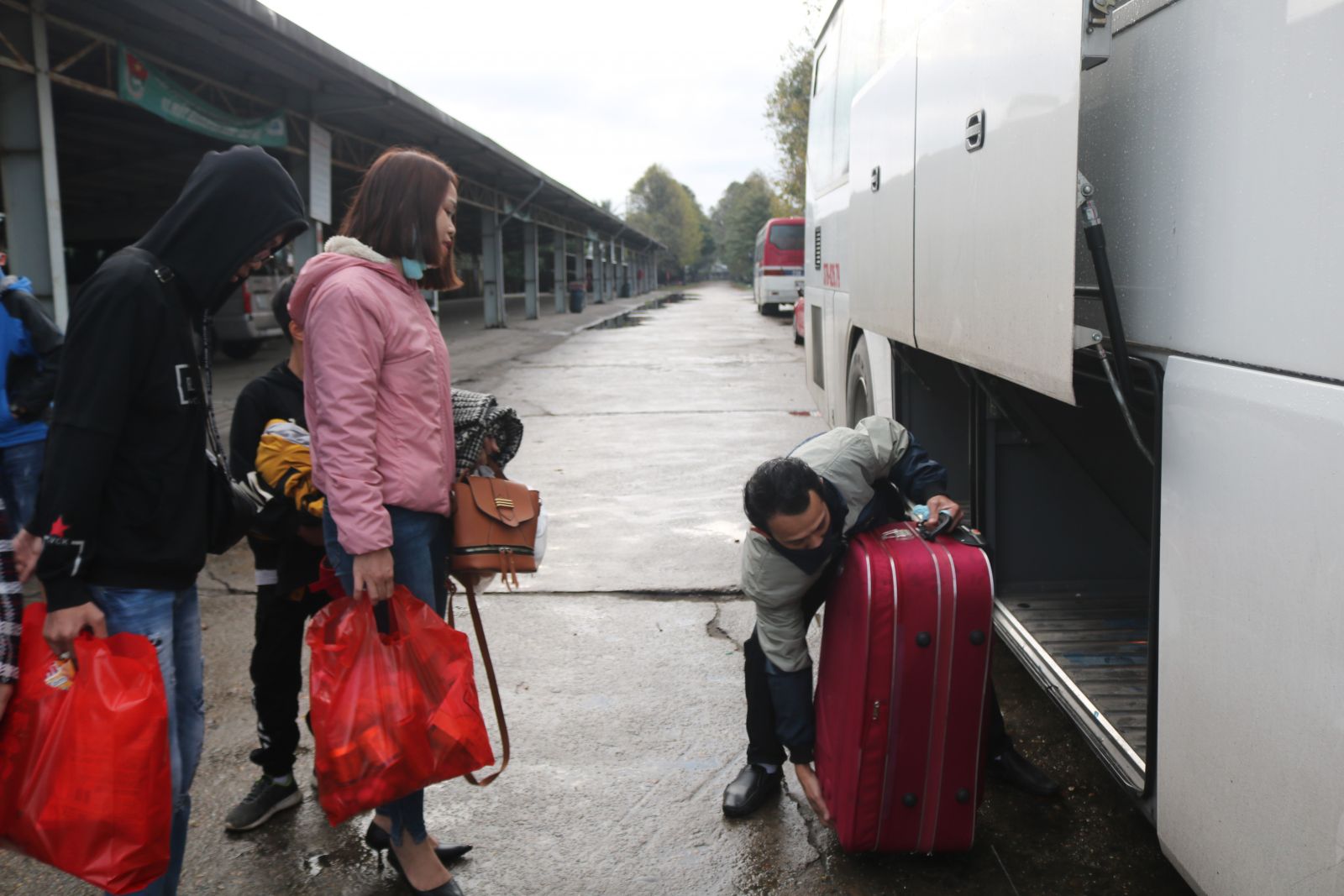 Nhiều công nhân chuẩn bị hành lý từ sáng sớm để kịp giờ lên xe
