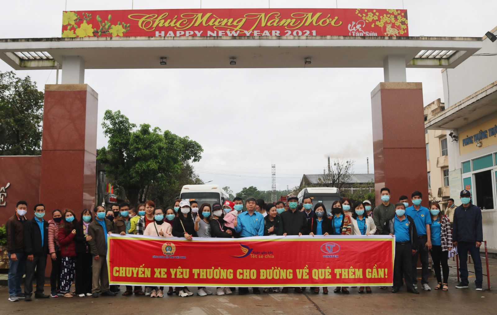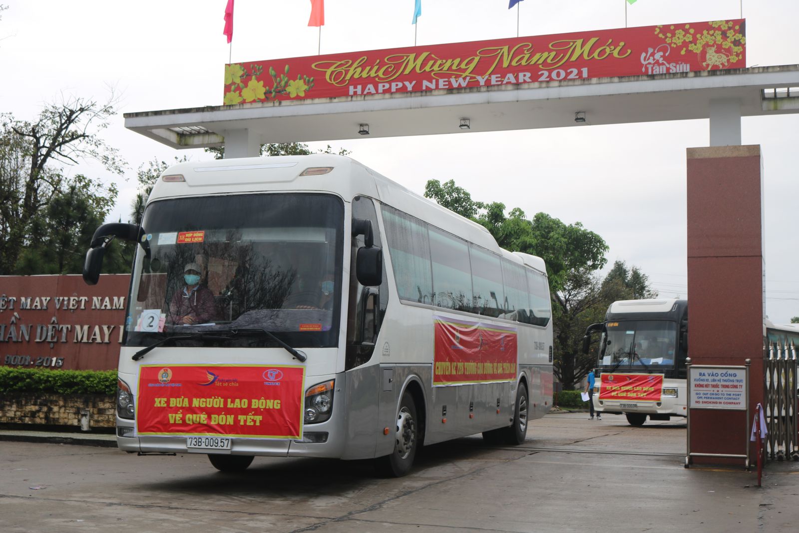 Với chủ đề “Chuyến xe yêu thương”, năm nay, Công ty CP Dệt may Huế tổ chức 3 chuyến xe, giúp hơn 100 người lao động và gia đình về quê. Các chuyến xe xuất phát từ TP. Huế đi các tỉnh phía Bắc, như: Quảng Bình, Hà Tĩnh, Nghệ An, Thanh Hóa.