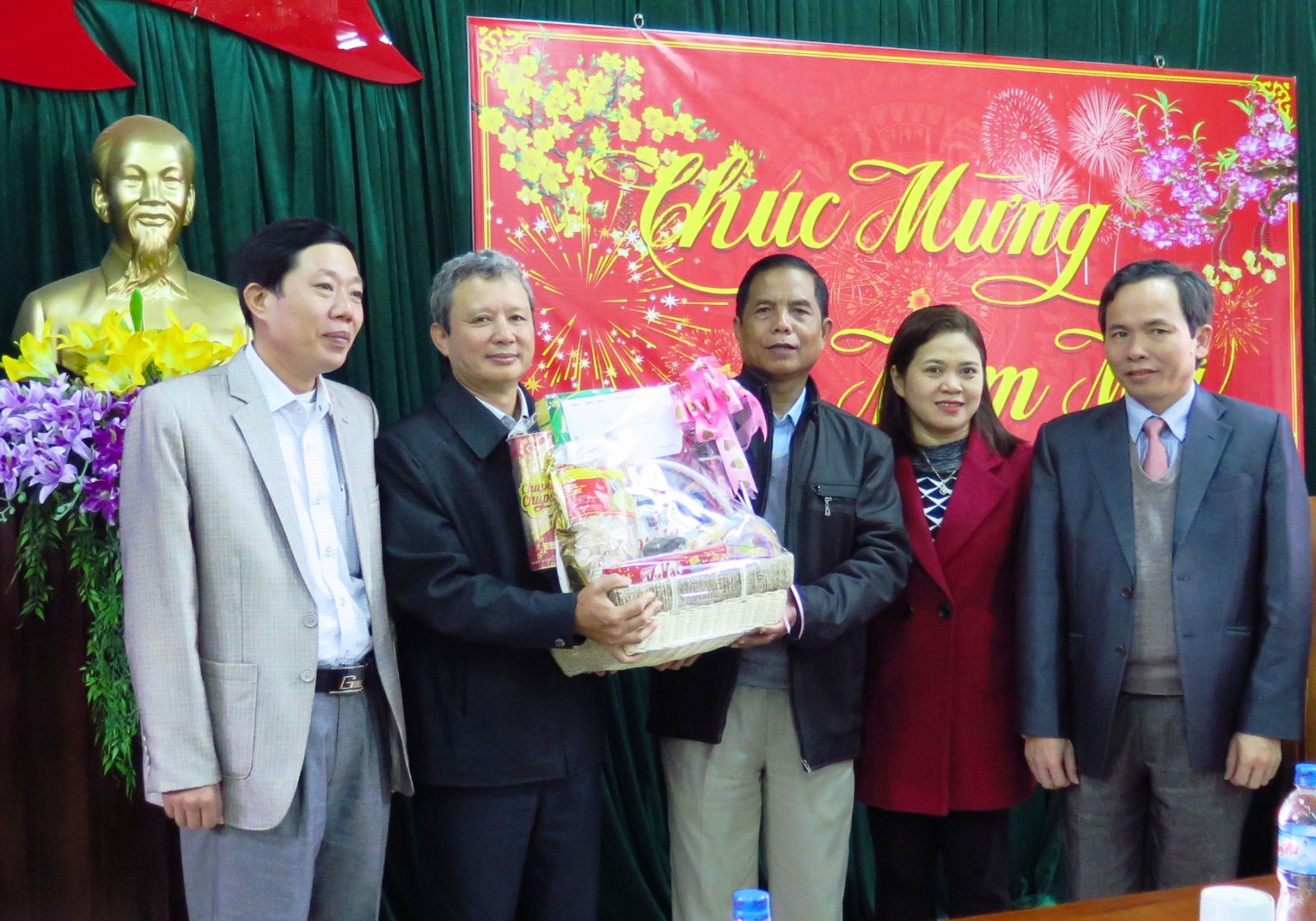 Bí thư Tỉnh ủy Lê Trường Lưu (thứa 2 từ trái) tặng quà chúc Tết đến huyện Nam Đông
