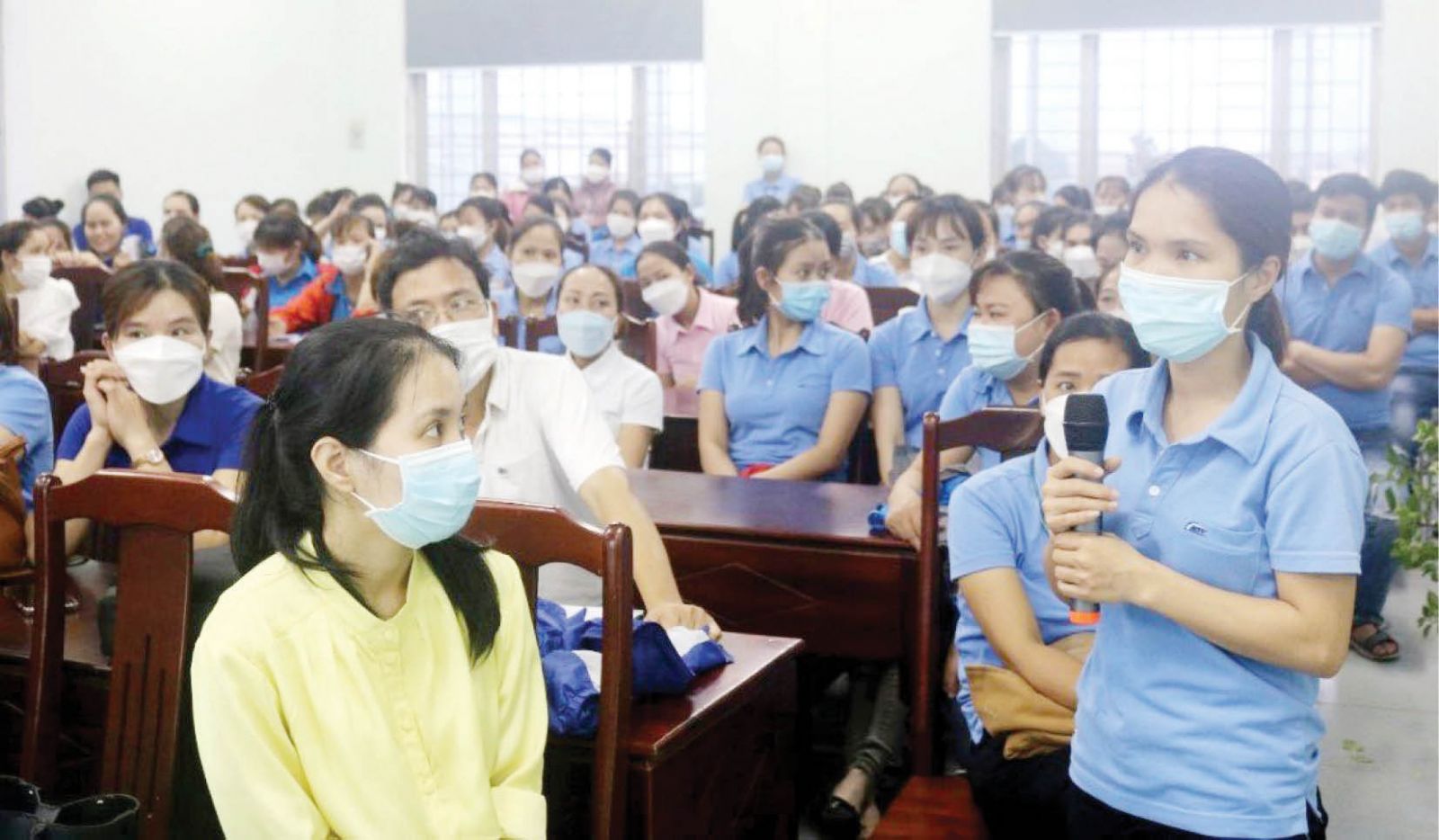 Người lao động hỏi về các chính sách bảo hiểm tại hội nghị tuyên truyền bảo hiểm xã hội tại Khu công nghiệp Phú Bài