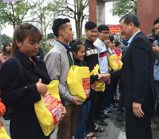 “Đây đã là năm thứ 5 liên tiếp trường tổ chức Chương trình xe về Tết cho sinh viên nhằm hỗ trợ cho các em về quê nghỉ Tết an toàn, ấm cúng và an vui. Qua chương trình này, chúng tôi mong muốn tăng cường hơn nữa sự kết nối giữa nhà trường, gia đình và xã hội để chăm lo đời sống tinh thần cho các em sinh viên”, PGS.TS.Lê Văn An, Hiệu trưởng nhà trường cho biết.
