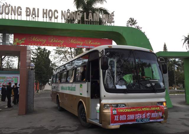 Lê Thị Hồng Hạnh, sinh viên lớp Chăn nuôi 48B, quê ở Quảng Nam, phấn khởi: “Đây là lần thứ hai em được tham gia chương trình xe miễn phí về quê ăn Tết. Nhờ có chương trình, chúng em được đi xe thoải mái, không phải chen lấn khổ sở như đi xe ngoài. Ba mẹ làm nông, nhà nghèo nên được đi xe của trường, em vui lắm”. Cùng chung tâm trạng, Hồ Phi Pha, lớp Nuôi trồng thủy sản 50B chia sẻ: “Em cảm thấy rất vui vì không phải lo tiền xe về. Quê em ở Thạch Hà, Hà Tĩnh, bố đi biển, hoàn cảnh gia đình rất khó khăn…”. Không giấu niềm háo hức hiện rõ trên khuôn mặt, Nguyễn Trần Quang Huy, sinh viên lớp Quản lý tài nguyên rừng 47, đạt danh hiệu sinh viên 5 tốt cấp Trung ương năm 2016 của trường cho hay: “Mẹ em làm nông, ba đã mất mấy năm rồi. Khi nhận được vé xe miễn phí em và các bạn trong lớp cảm thấy rất ấm áp. Em rất cảm ơn nhà trường đã quan tâm đến những sinh viên có hoàn cảnh khó khăn như em”.
