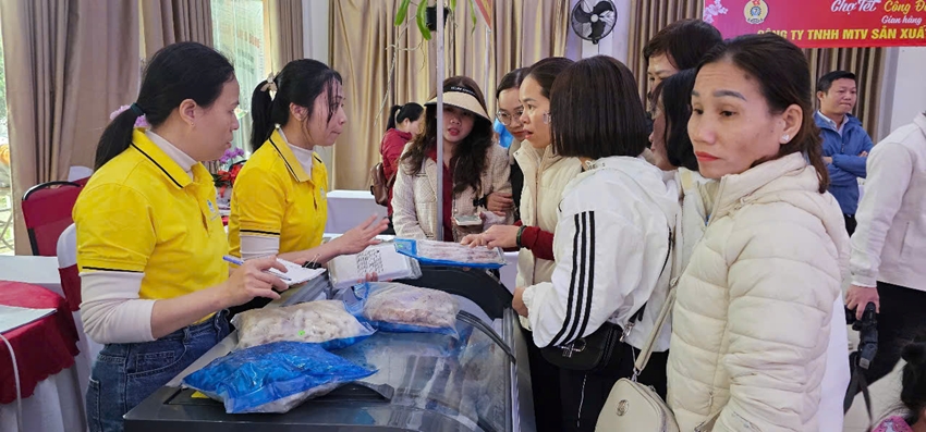 | Công nhân mua hàng tại phiên chợ công đoàn |
