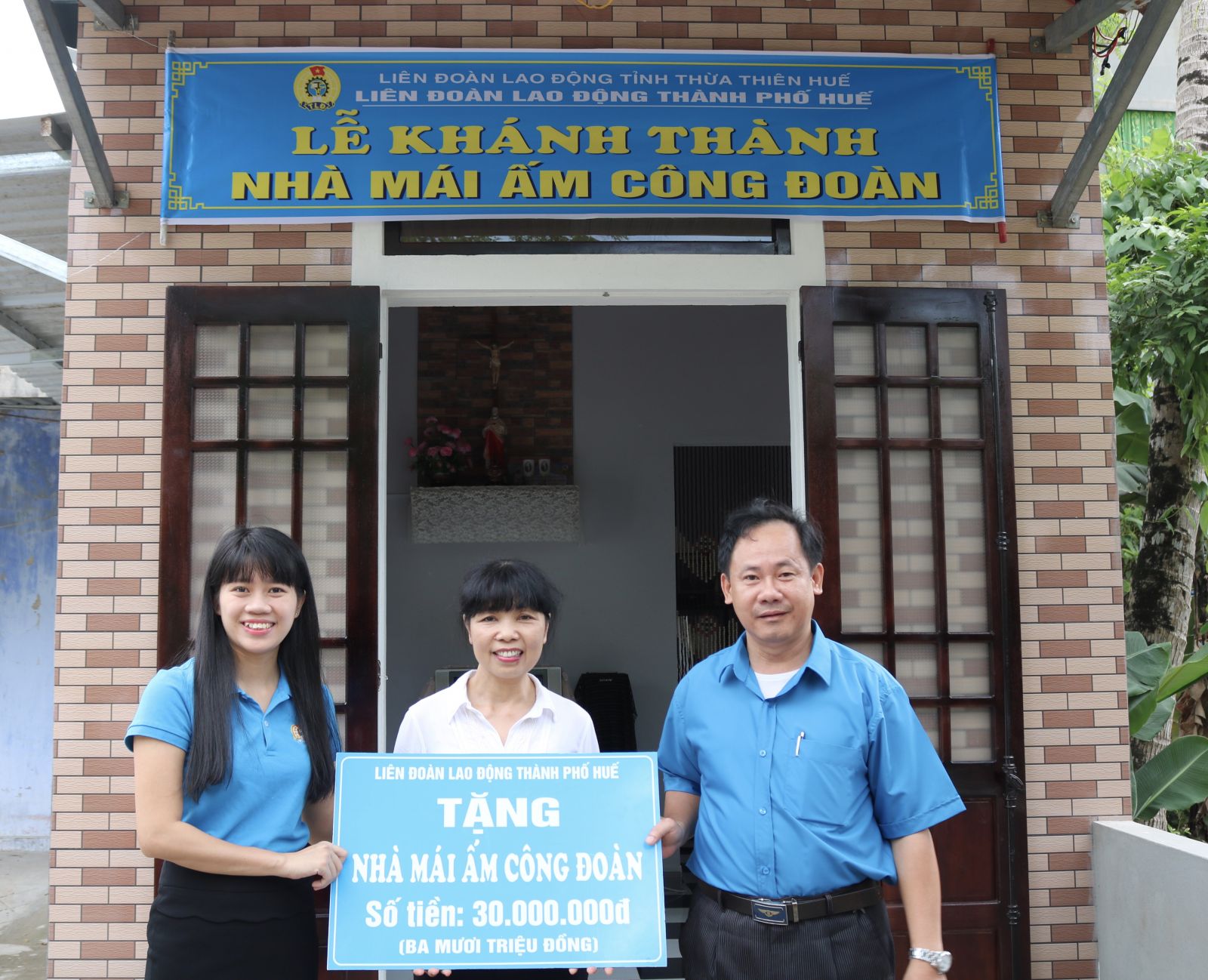 Sau hai tháng triển khai xây dựng, căn nhà khang trang hơn 30m2 trị giá 70 triệu đồng tại phường Phường Đúc (TP. Huế) đã được trao tận tay chị Trinh, trong đó LĐLĐ TP. Huế hỗ trợ 30 triệu đồng và Trường mầm non Sơn Ca hỗ trợ 5 triệu đồng.