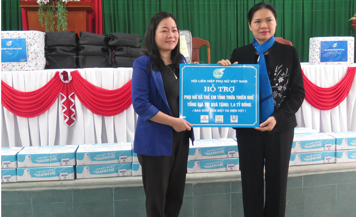 Đoàn đã trực tiếp về thăm và tặng quà cho người dân huyện Phong Điền và thị xã Hương Trà. Cụ thể, thăm và tặng quà cho 2 Mẹ Việt Nam Anh hùng, mỗi suất quà trị giá 5 triệu đồng; trao tặng kinh phí hỗ trợ sinh kế cho 20 phụ nữ nghèo, khó khăn, mỗi người 5 triệu đồng; tặng 40 suất học bổng, mỗi suất trị giá 1 triệu đồng cho các em học sinh.