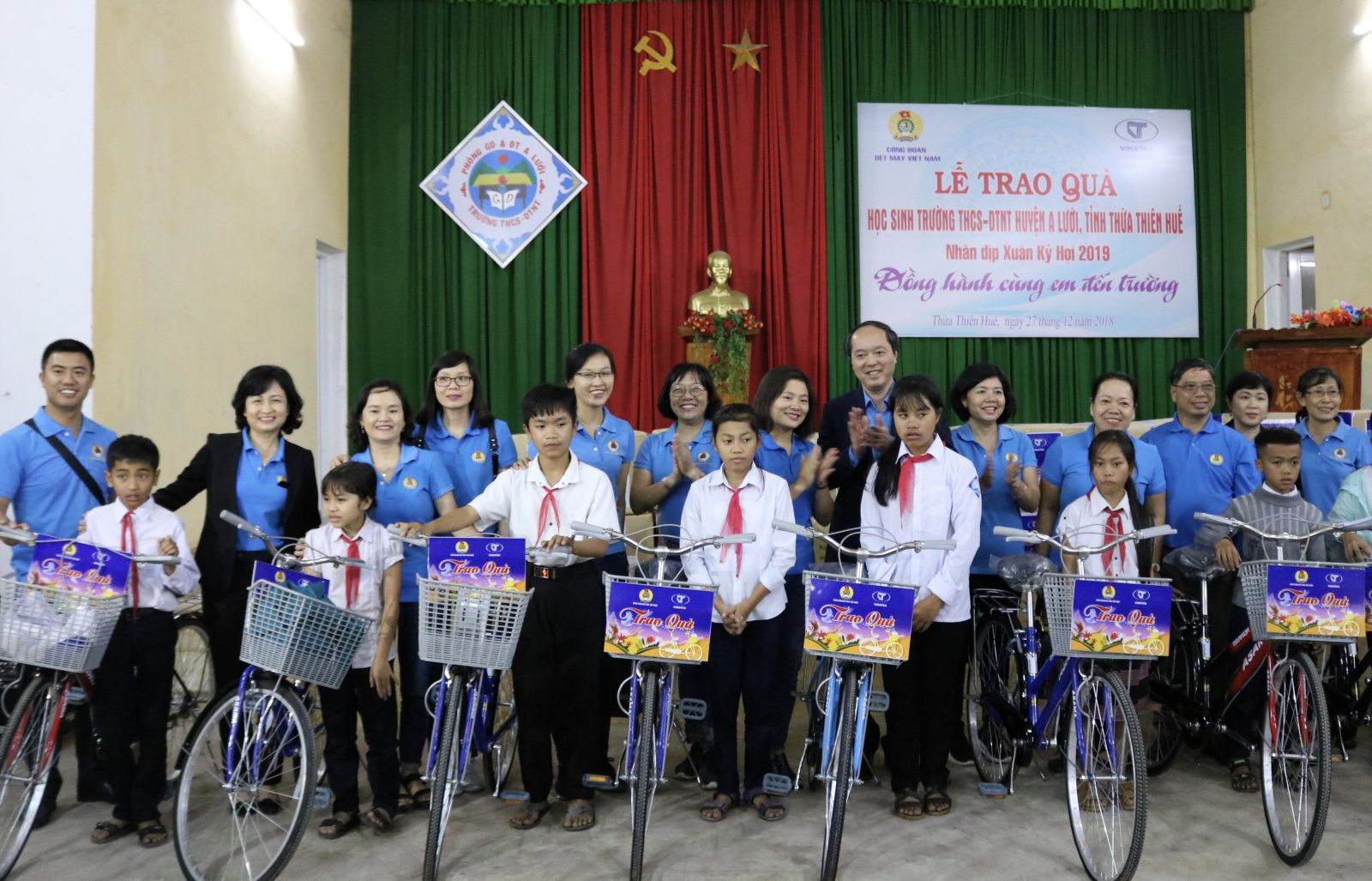 20 xe đạp và 200 suất quà cũng được gửi đến các em học sinh có hoàn cảnh khó khăn tại Trường THCS Nội trú A Lưới. Nhà trường cũng nhận được 10 triệu đồng để mua sắm thiết bị, nâng cao chất lượng dạy học.