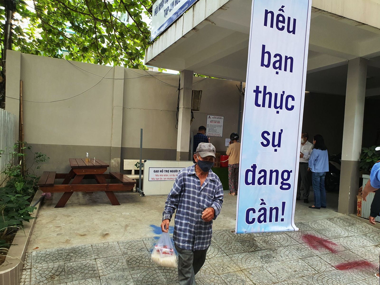 Những đối tượng yếu thế sẽ được ưu tiên nhận gói hỗ trợ an sinh xã hội sớm. Trong ảnh: Người dân có hoàn cảnh khó khăn nhận gạo hỗ trợ từ các nhà tài trợ tại ATM gạo trên đường Nguyễn tri Phương chiều 15/4