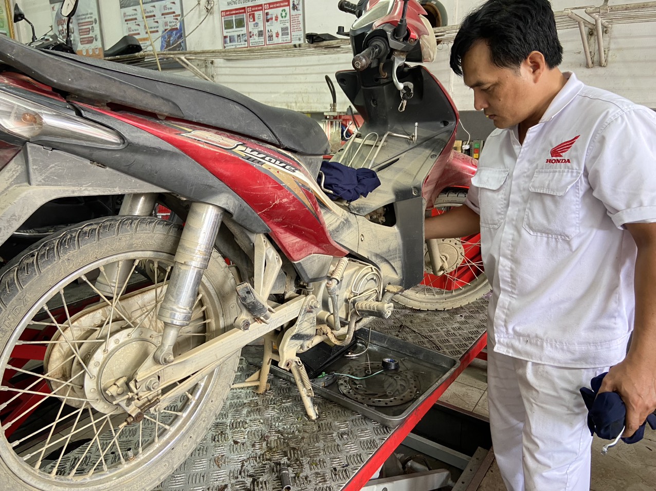 Hỗ trợ sửa xe máy bị ngập do mưa lũ cho sinh viên