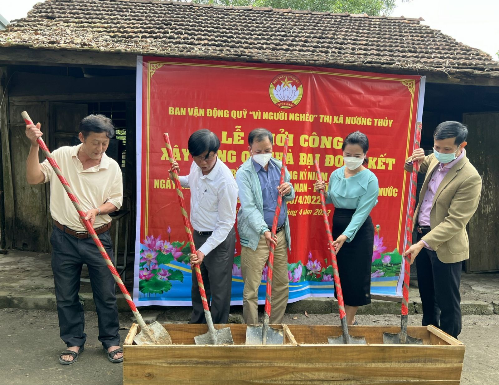 HNN.VN - Chiều 21/4, UBMTTQ Việt Nam TX. Hương Thủy tổ chức Lễ khởi công xây dựng 6 nhà Đại đoàn kết và hỗ trợ sửa chữa 3 nhà cho các gia đình thuộc hộ nghèo, cận nghèo, khó khăn trên địa bàn thị xã.