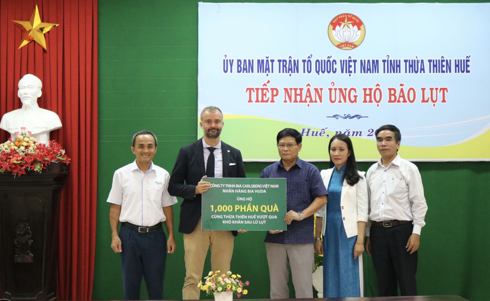 Công ty TNHH Bia Carlsberg Việt Nam ủng hộ 1.000 phần quà gồm các nhu yếu phẩm hỗ trợ người dân Thừa Thiên Huế vượt qua khó khăn, khắc phục hậu quả do đợt mưa lũ vừa qua gây ra.