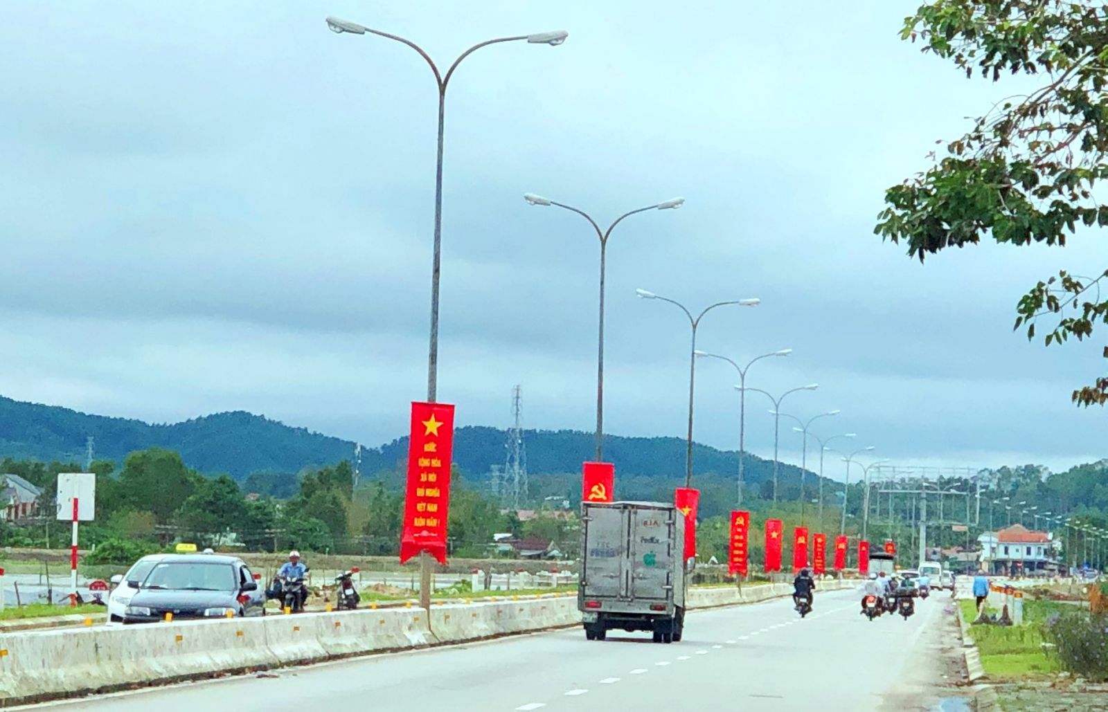 Cùng với dọn môi trường, các tuyến đường lớn được treo cờ chào mừng ĐH Đại biểu Đảng bộ tỉnh