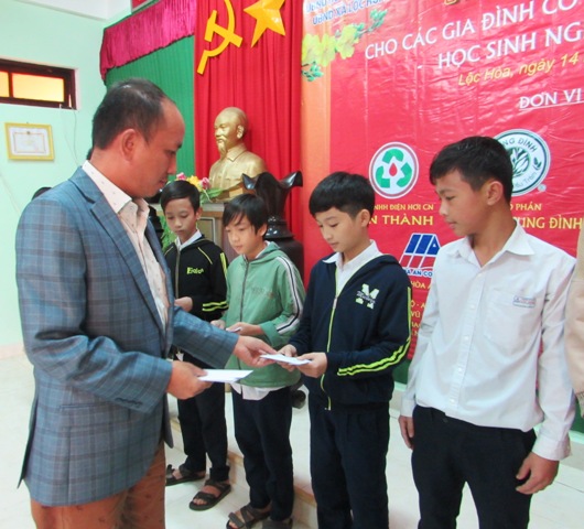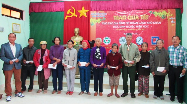 Trong hai ngày 14-15/1, Chương trình “Tặng quà cho đồng bào nghèo và học sinh có hoàn cảnh khó khăn” do Công Ty CP Dầu Tràm Cung Đình phối hợp cùng Hội Đồng hương Phú Lộc tại TP.Hồ Chí Minh, Công ty TNHH Điện hơi công nghiệp Nghiệp Tín Thành, Công ty Trà vả Lộc Mai tổ chức tặng quà cho đồng bào nghèo và học sinh có hoàn cảnh khó khăn tại tại 6 xã: Lộc Tiến, Lộc Thủy, Lộc Hòa, Lộc Trì, Vinh Hiền, Vinh Hưng và Hội người mù huyện Phú Lộc.
