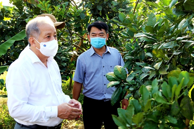 Phó Bí thư Thường trực Tỉnh ủy Phan Ngọc Thọ thăm mô hình trồng cây ăn quả ở Quảng Điền