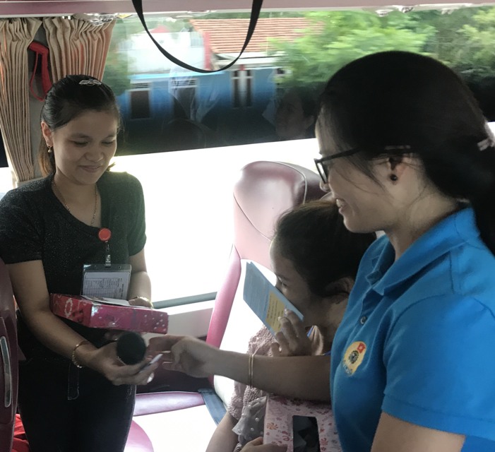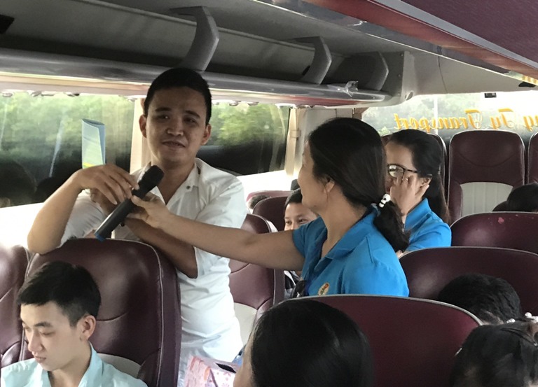 Đặc biệt, chương trình giao lưu đố vui trên chuyến xe do các cán bộ công đoàn chuẩn bị với 15 câu hỏi xoay quanh các vấn đề: kiến thức pháp luật lao động, an toàn vệ sinh lao động, an toàn giao thông, chăm sóc sức khỏe… giúp công nhân được trang bị thêm kiến thức thực tiễn, phục vụ công việc và cuộc sống hằng ngày.