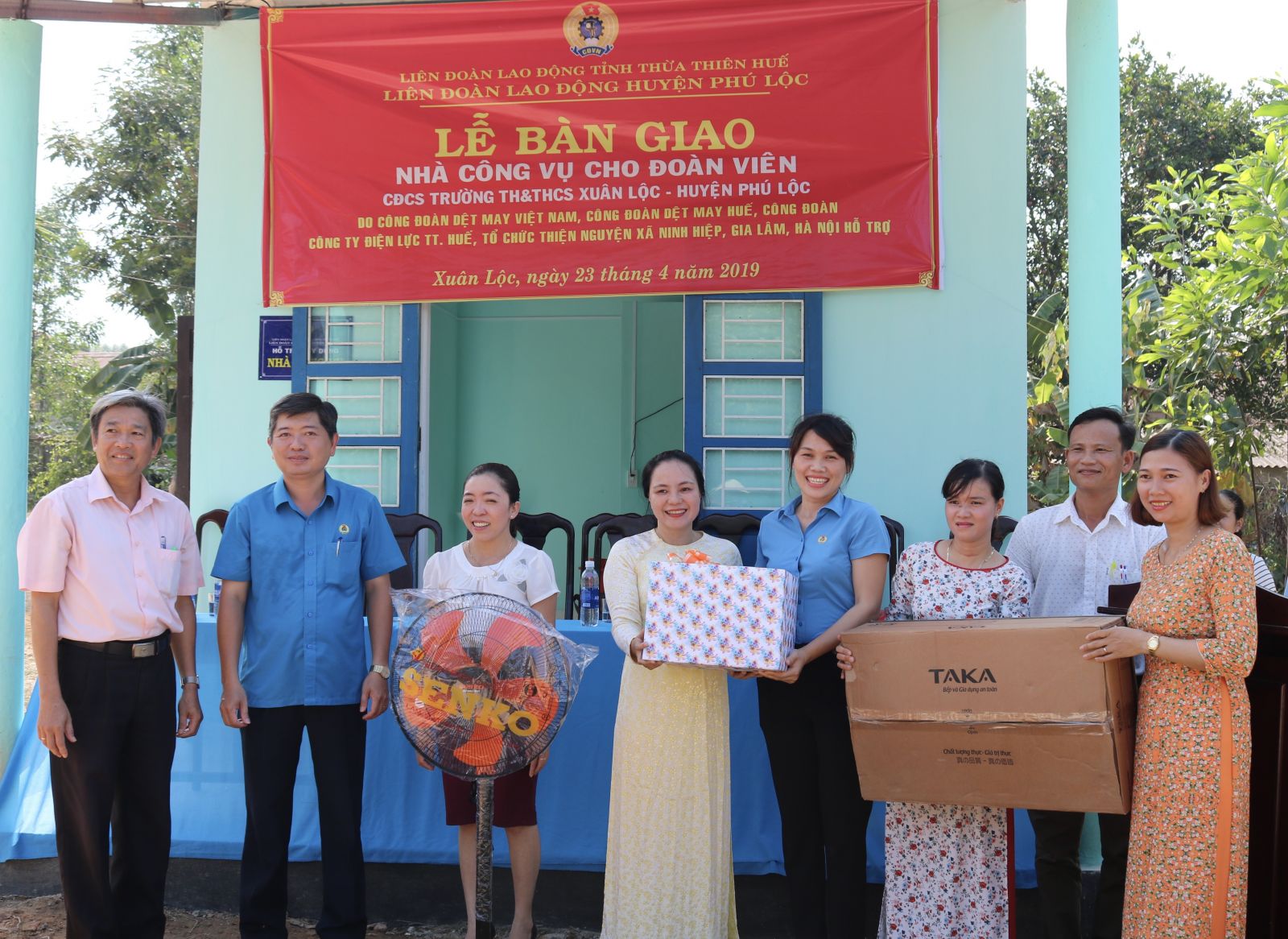 Sau hơn 2 tháng xây dựng, nhà công vụ gồm 1 phòng nghỉ và khu vệ sinh đã hoàn thành với kinh phí 70 triệu động, giúp san sẻ phần nào khó khăn với những giáo viên xa nhà; tạo điều kiện sinh hoạt tốt hơn để thầy cô an tâm công tác, giảng dạy. Nguồn kinh phí do Công đoàn Dệt May Việt Nam, Công đoàn Dệt May Huế, Công đoàn Công ty Điện lực T.T. Huế và Tổ chức Thiện nguyện xã Ninh Hiệp (Gia Lâm, Hà Nội) hỗ trợ.
