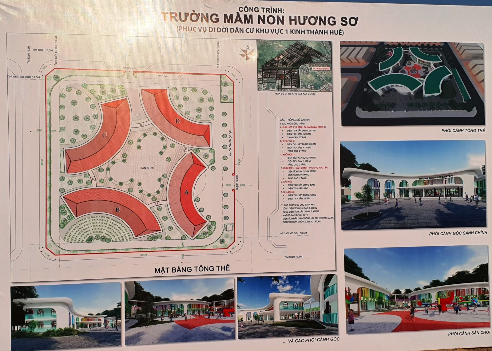 Phát biểu tại lễ khởi công, Chủ tịch UBND tỉnh Phan Ngọc Thọ cho rằng, với mong muốn đảm bảo các điều kiện phục vụ an sinh xã hội, cơ sở vật chất phục vụ học tập, sinh hoạt cho con em các hộ dân tái định cư thuộc diện di dời dân cư khu vực 1 kinh thành Huế, lãnh đạo tỉnh, thành phố đã nỗ lực huy động nguồn lực để xây dựng trường mầm non nhằm tạo môi trường học tập tốt nhất cho con em các hộ dân tái định cư khi đến nơi ở mới.